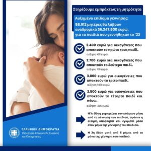 Αυξημένο επίδομα γέννησης: 58.912 μητέρες θα λάβουν αναδρομικά 36.247.500 ευρώ για τα παιδιά που γεννήθηκαν το ’23 – Τη Μεγάλη Τρίτη η καταβολή